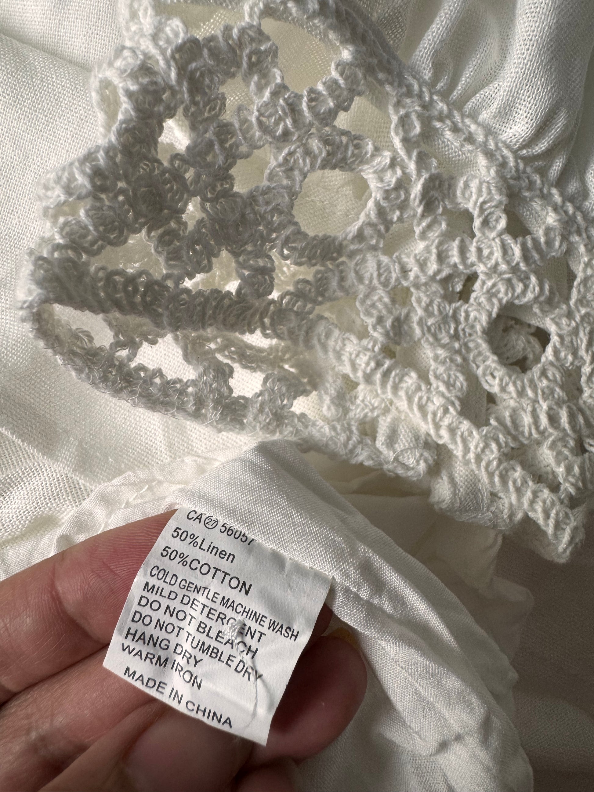 Delicate embroidery details on the collar and cuffs add a touch of artisanal charm, while the lightweight linen-cotton blend ensures breathability — ideal for Dubai’s sunny days and balmy evenings.