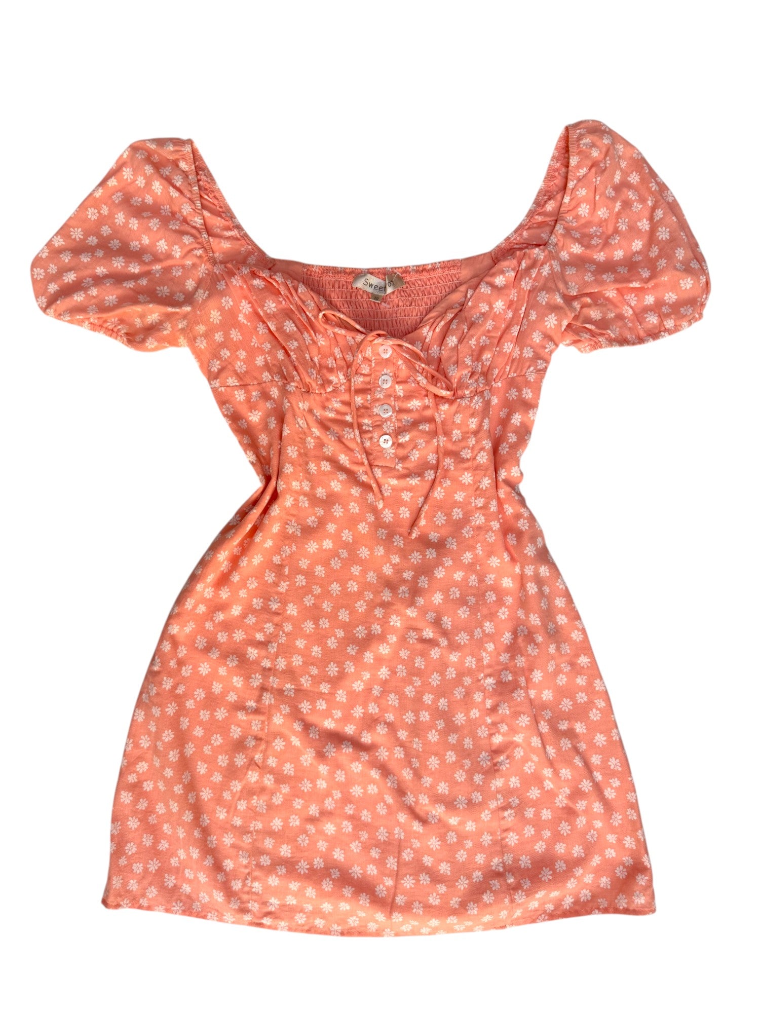 Turn heads this season with this Sweetpot pink cotton floral minidress, a dreamy summer thrift find in Dubai. Featuring a sweetheart neckline and romantic puffed sleeves, this dress is designed to flatter while keeping you effortlessly chic.