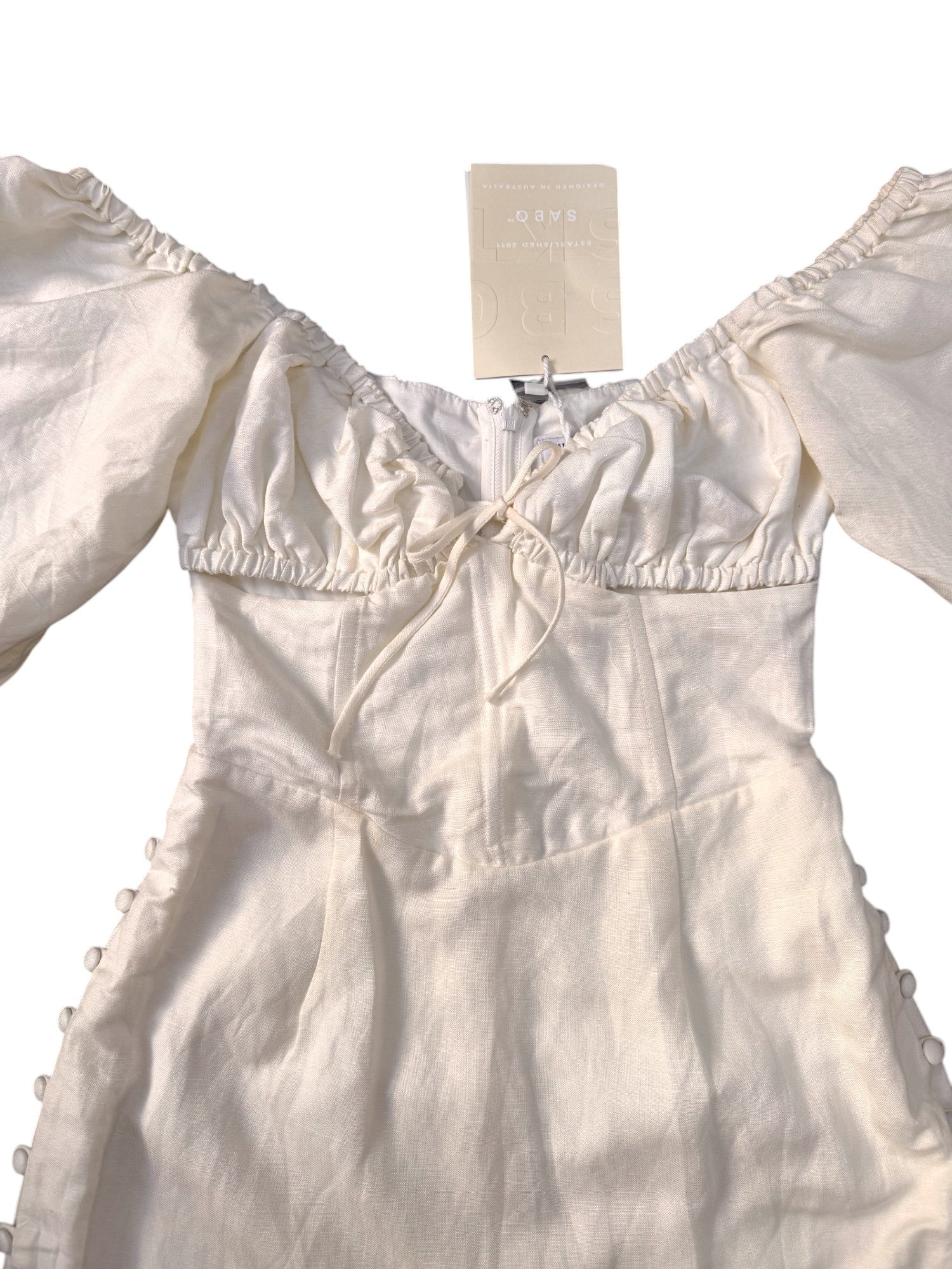 SABO White Linen Blend Mini Dress – Sweetheart Neckline & Cut-Out Detail