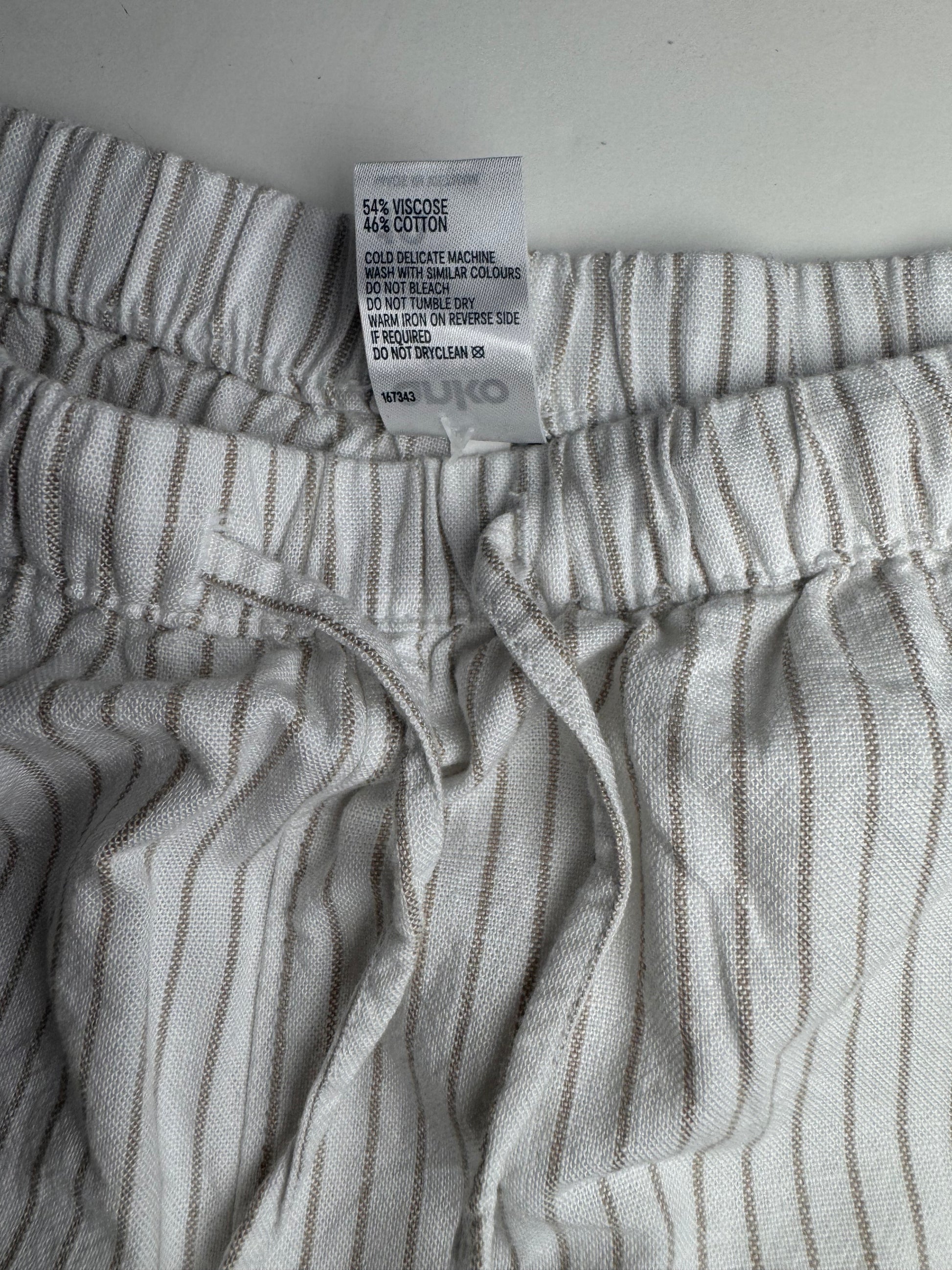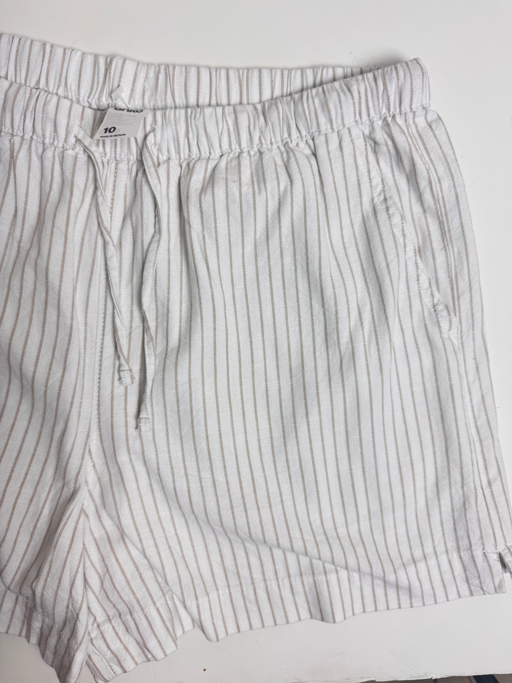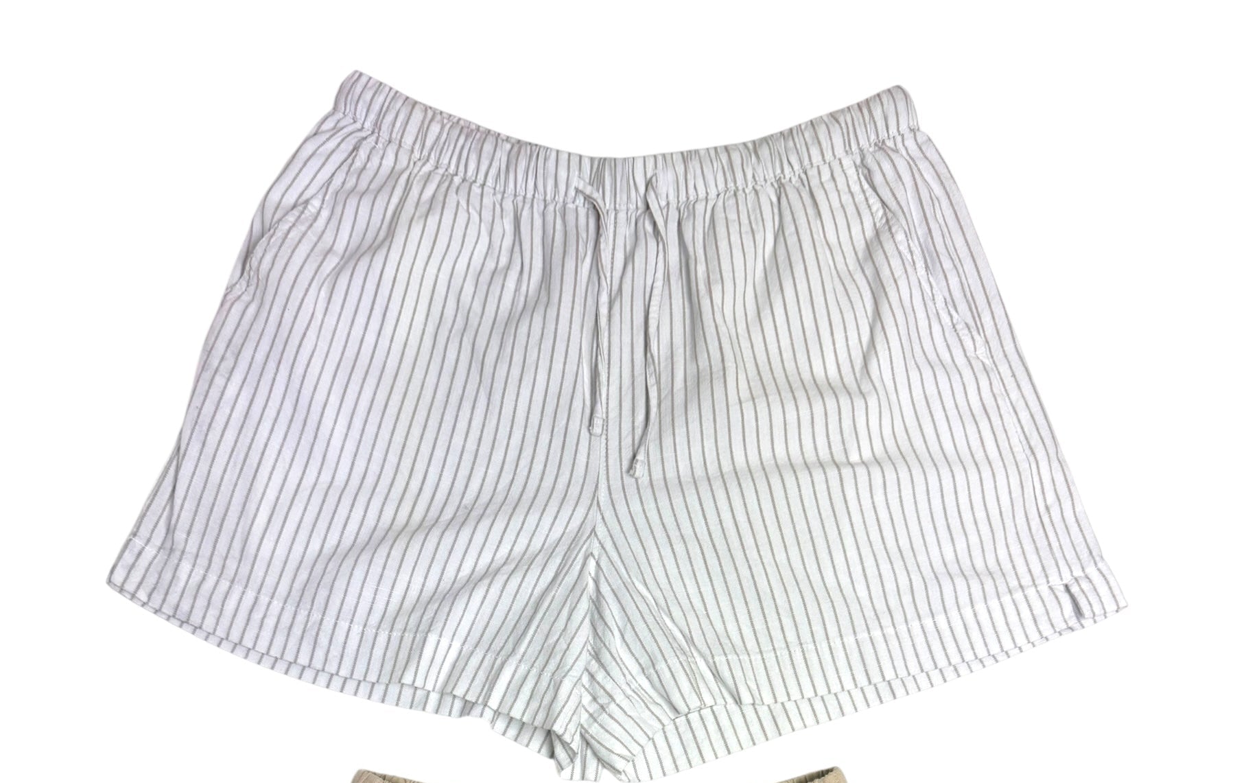 Beat the Dubai heat in style with these thrifted Anko white linen blend shorts with beige stripes. Designed with a relaxed fit and elasticated waistband, these shorts offer breathable comfort and effortless chic.