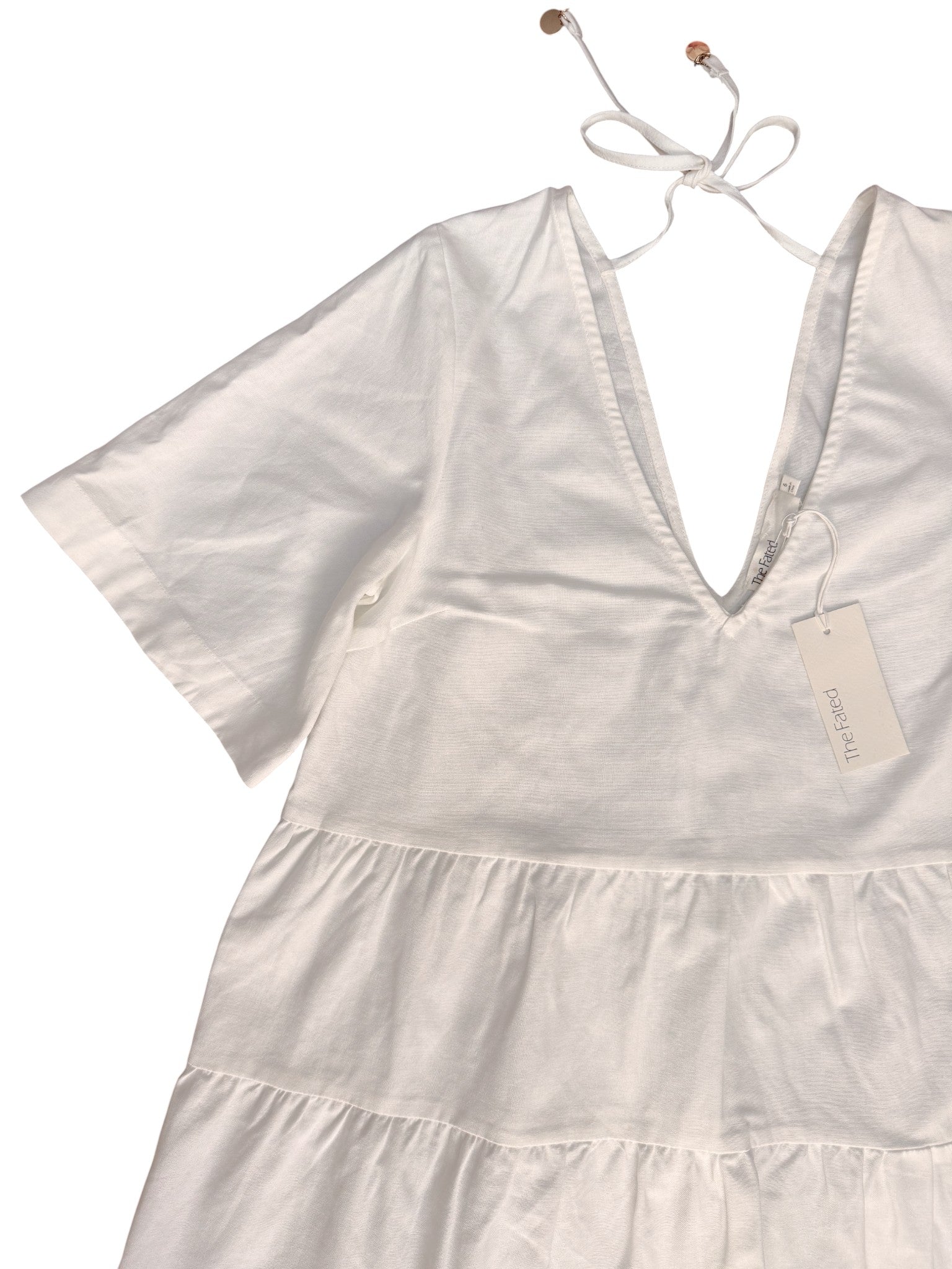 White Linen Blend Tiered Mini Dress | Babydoll Summer Dress