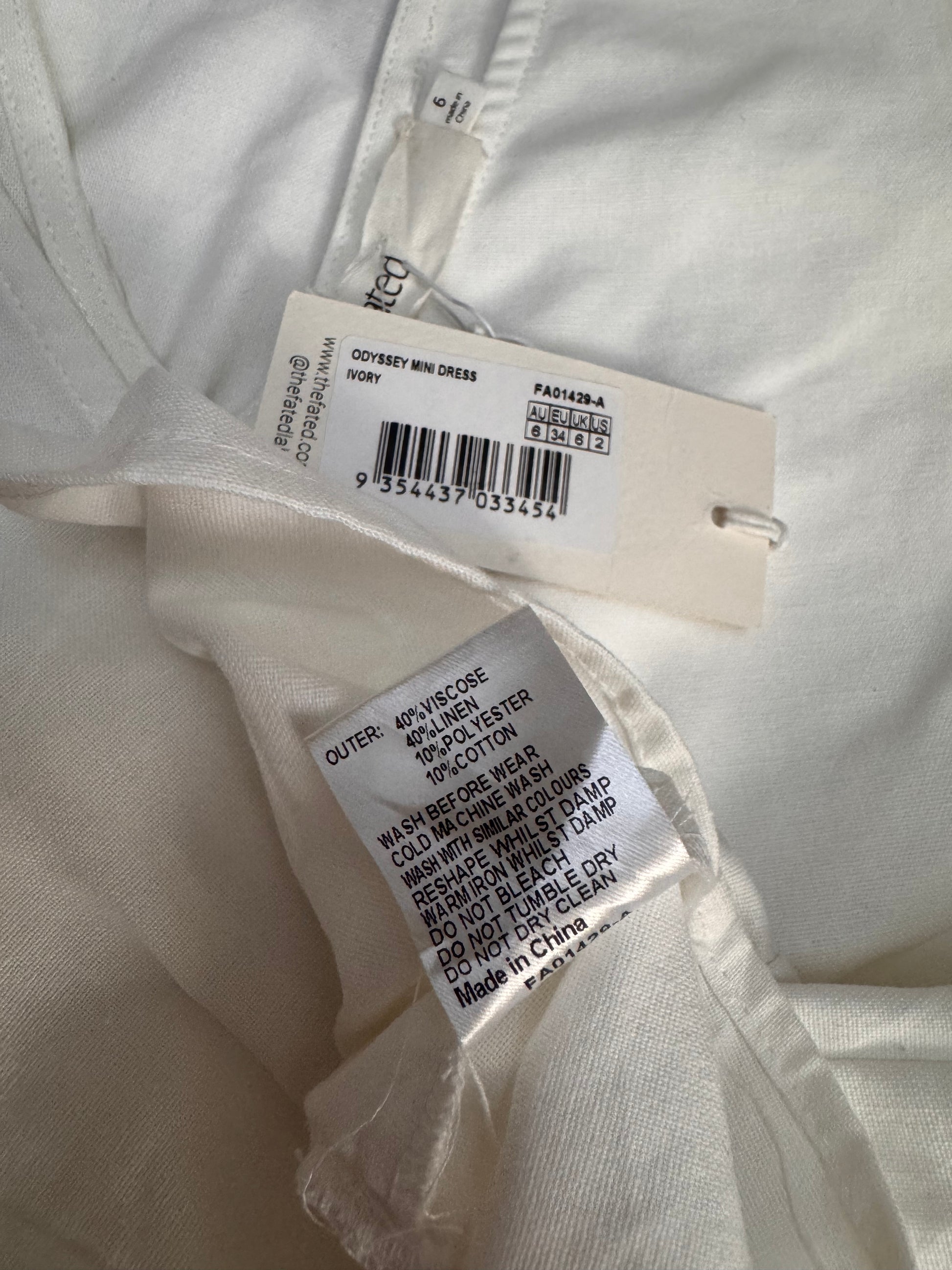 Embrace timeless elegance and effortless comfort with this white linen-blend tiered mini dress. Designed in a babydoll silhouette, this dress features a V-neckline, and a loose, flowy fit that flatters all body shapes. The linen-viscose-cotton blend gives it a soft, airy texture — perfect for Dubai’s sunny days and resort escapes.